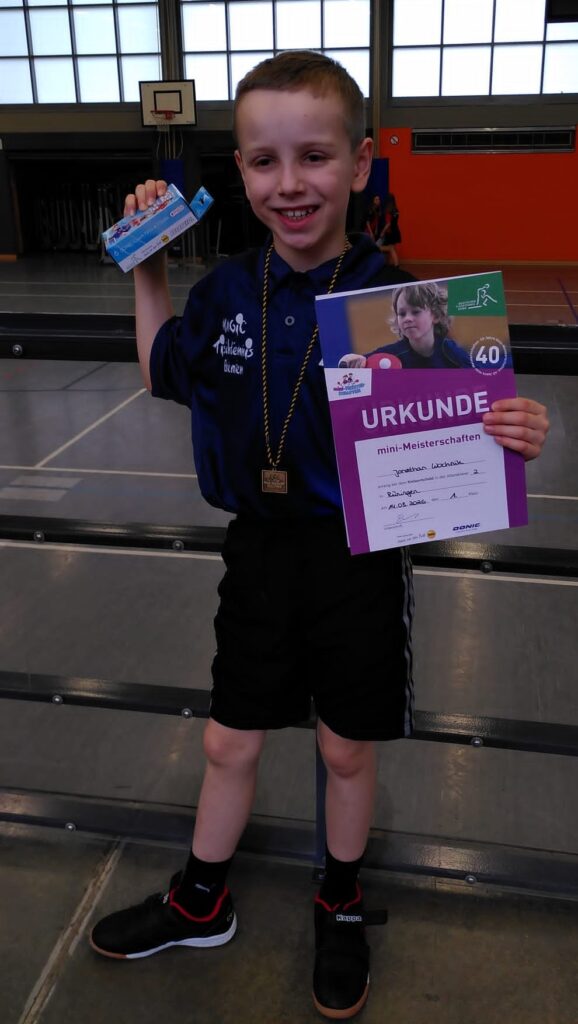 Im Finale gegen Damian Sasmuzki aus Salzgitter zeigte er jedoch, dass er sich gegen einen Abwehrspieler sehr gut spielerisch und auch taktisch durchsetzen kann. Die beiden lieferten sich tolle Ballwechsel, ehe Jonathan auch hier mit 3:1 Sätzen die Oberhand behielt.